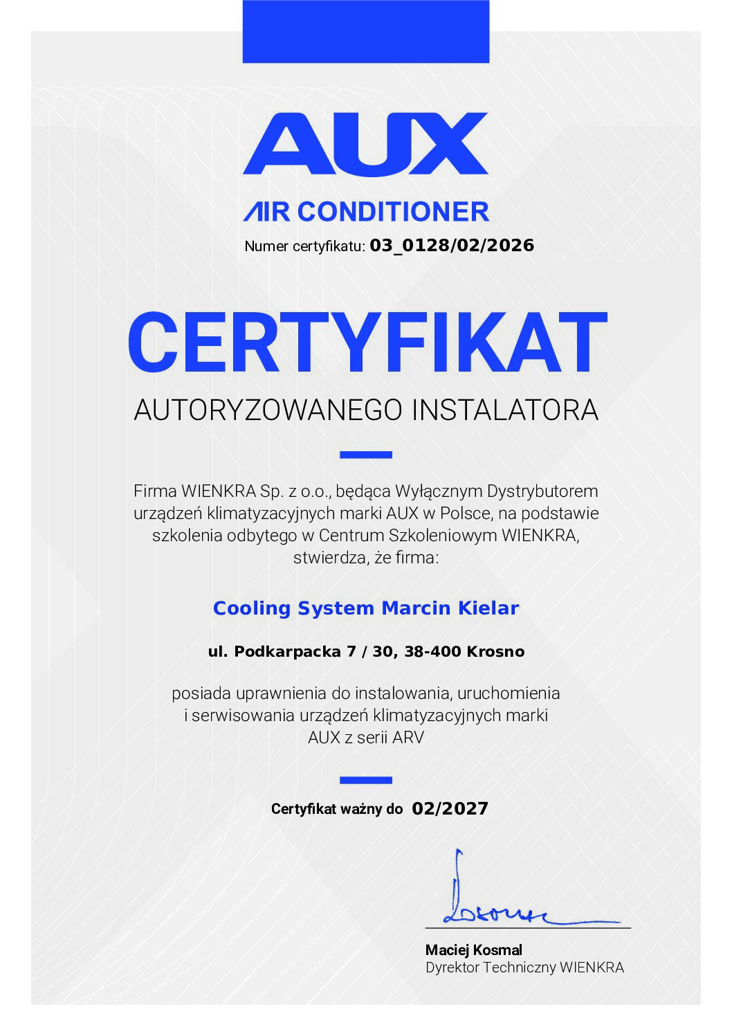 Nasza firma posiada wiele certyfikatów i autoryzacji, które potwierdzają nasze kwalifikacje oraz umiejętności w dziedzinie montażu i serwisowania klimatyzacji oraz urządzeń chłodniczych.
